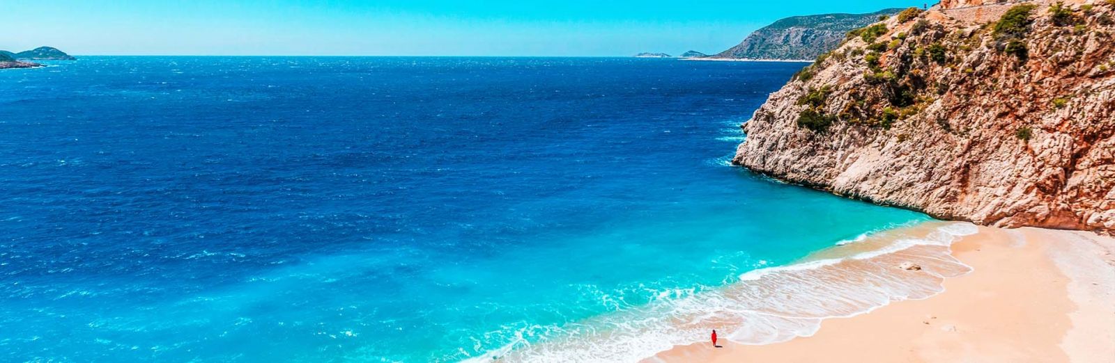 640 km. uzunluğundaki sahil şeridine sahip bir yeryüzü cenneti olan Antalya’nın kıyıları, uçsuz bucaksız plajları, beyazdan altın sarısına geçiş yapan renkteki kumsalları, masmavi, berrak suları, el değmemiş güzellikteki koyları ile dikkat çekiyor.