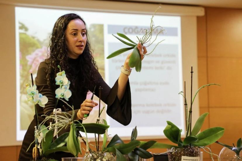 Eğitimi veren Ziraat Teknikeri Mine Alpkapan, orkidelerin doğru koşullarda yetiştirilmesinin önemine dikkat çekerek,