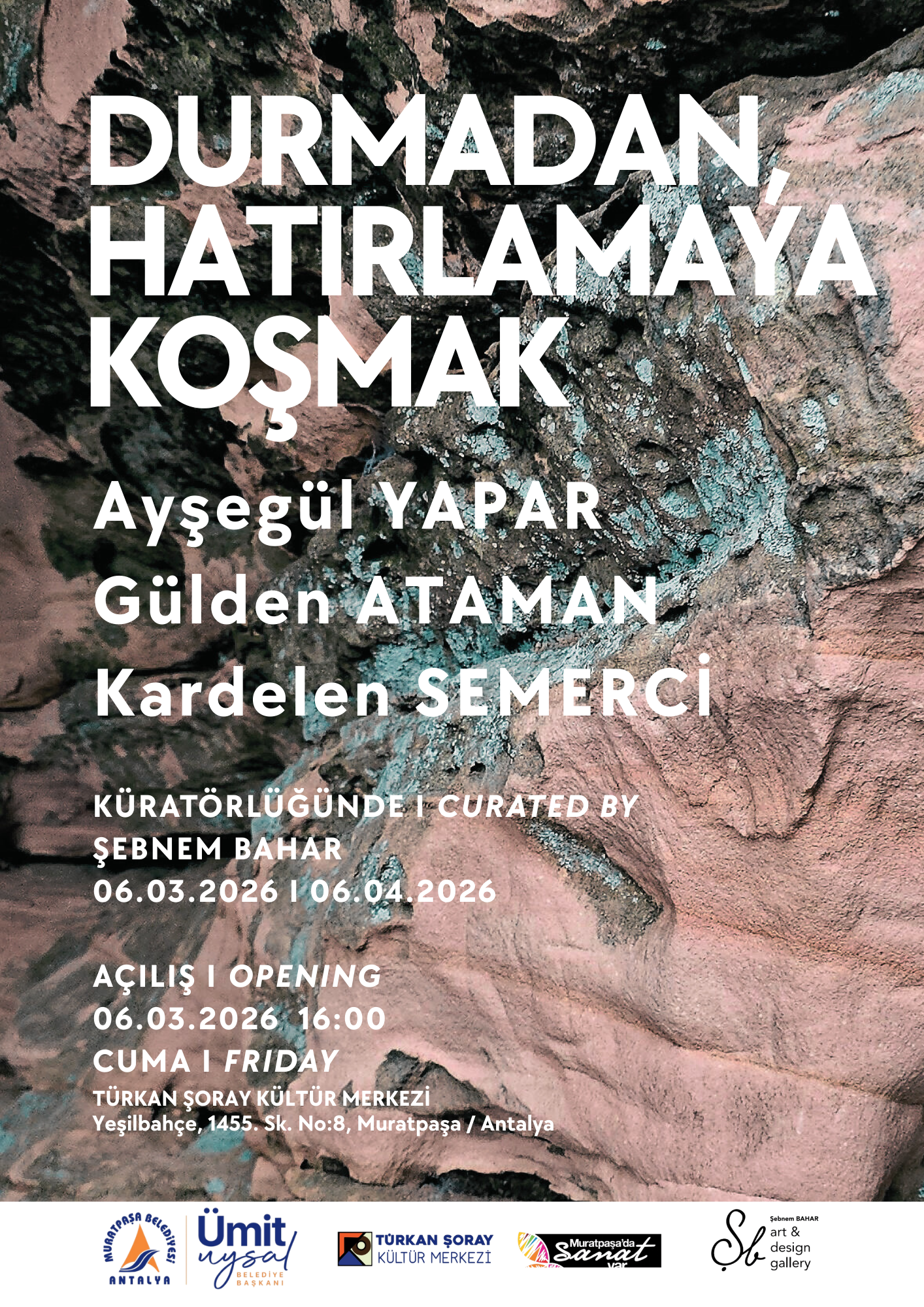 “Durmadan, Hatırlamaya Koşmak” sergisi, Antalya’da sanatseverlerle buluşuyor. Hafıza, bilinçaltı ve mekân kavramlarını odağına alan sergi, 6 Mart Cuma günü saat 16.00’da Türkan Şoray Kültür Merkezi’nde kapılarını açacak. Küratörlüğünü Şebnem Bahar’ın üstlendiği sergi, belleği sabit bir arşiv değil, sürekli yeniden kurulan bir süreç olarak ele alıyor.