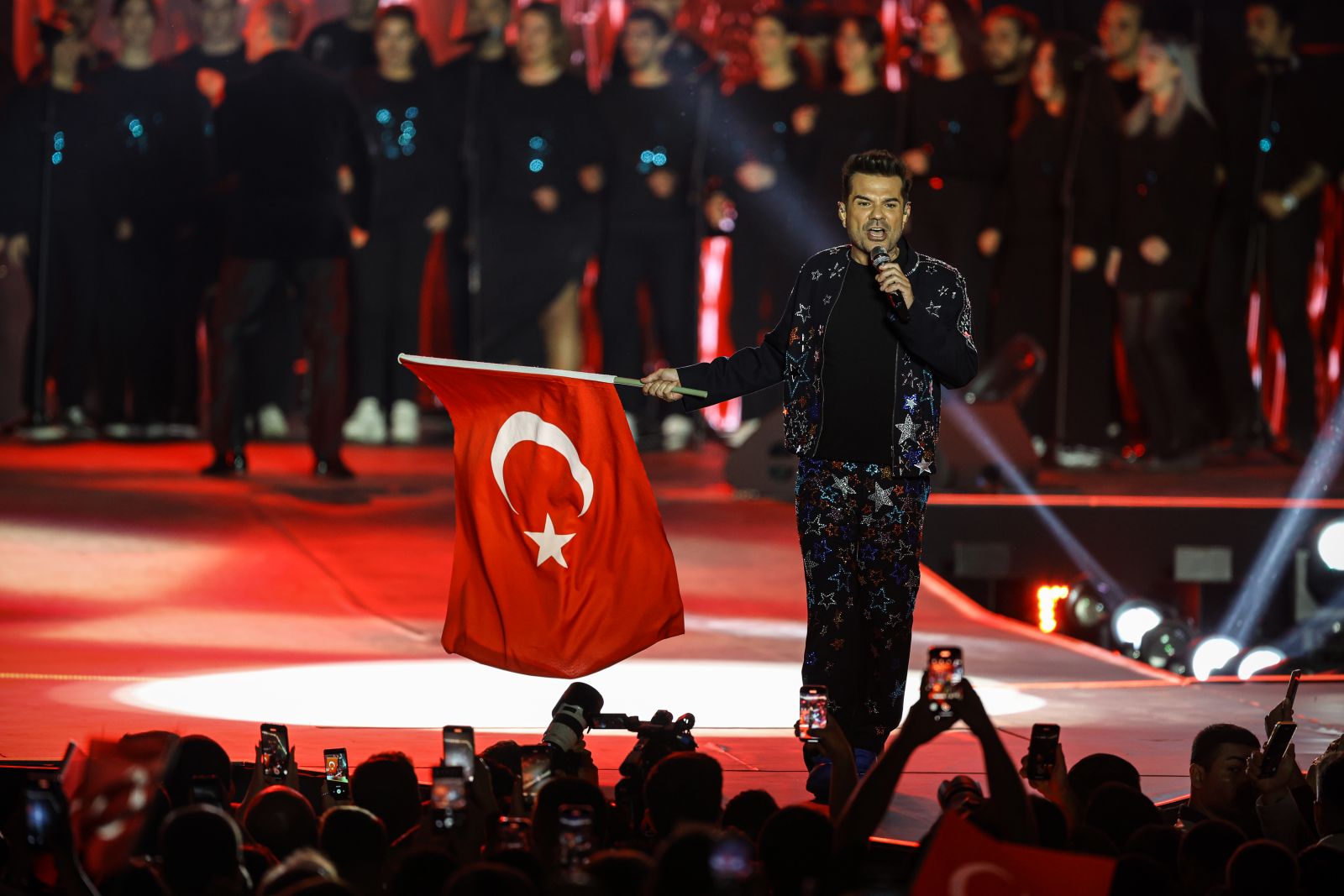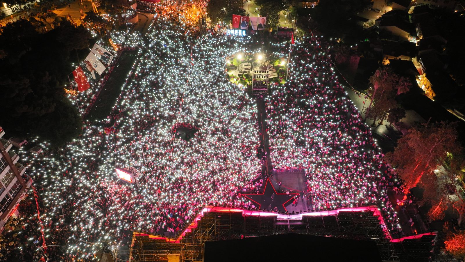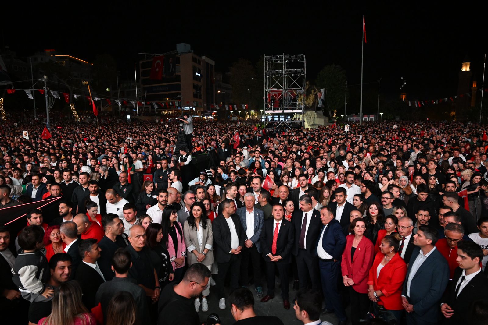 Cumhuriyet Meydanı’na dolup taşarken, on binler Cumhuriyet coşkusunu birlikte yaşadı. Konser öncesinde sahne alan ‘Ersin Show’ Antalyalıları coşturdu. Telefon ışıklarıyla ve birbirinden güzel showlar ile Cumhuriyet Meydanı’nda görsel şölen yaşandı. Saygı duruşu ve İstiklal Marşı’nın okunmasıyla başlayan Cumhuriyet Bayramı kutlamalarında Antalya Büyükşehir Belediye Başkanı Muhittin Böcek, elinde Türk bayrağıyla alanı dolduran on binleri selamladı.